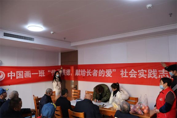 实践心得:爱老敬老是中华民族的优秀传统美德,是流淌在炎黄子孙血脉中的文化基因。寒假期间,2023级中国画一班组成孝贤行动实践队,在济南市长清区文昌街道敬老院开展了“传承美德,献给长者的爱”社区志愿服务活动。活动中,团员们发挥专业特长,用毛笔与敬老院爷爷奶奶一起写下了对新年的美好祝愿,并将带来的水果分给老人们。经过短暂的相处,老人们动人朴实的笑容深深地打动了同学们。活动结束后,大家一致认为:敬老爱老是当代大学生有必要深入学习的一门社会课程,新时代青年应将爱老敬老的优良传统传承下去。