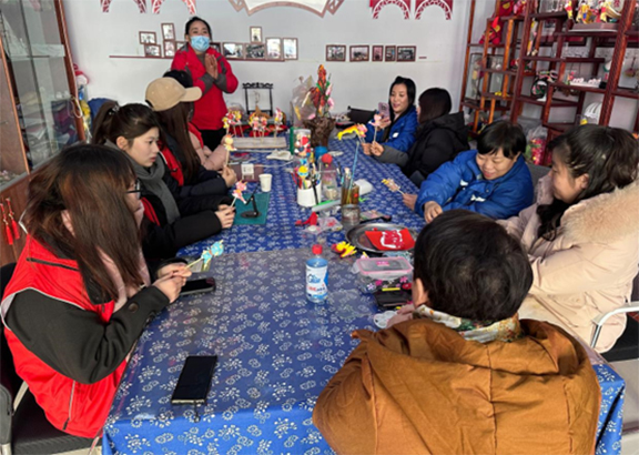(图为“寻觅非遗”社会实践队成员学习制作鲁南布艺工艺品)