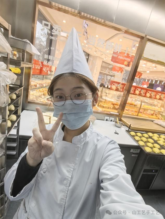 实践心得:蛋糕面包很好吃,但制作过程很辛苦,烘烤师早上要比普通店员起的更早来准备面团和装裱等后续工作。在工作中不光要做好面包,还要兼顾货品的调配。蛋糕店必须干净卫生,每天要专门抽出来时间打扫,擦拭桌面,清理好垃圾桶,以及查看材料是否过期。看似像捏蛋挞皮这样的简单工作,都需要很认真对待。所以我觉得不管是在什么岗位,都要认真对待,不能马虎,每一份工作都很辛苦,祝福每一位打工人!