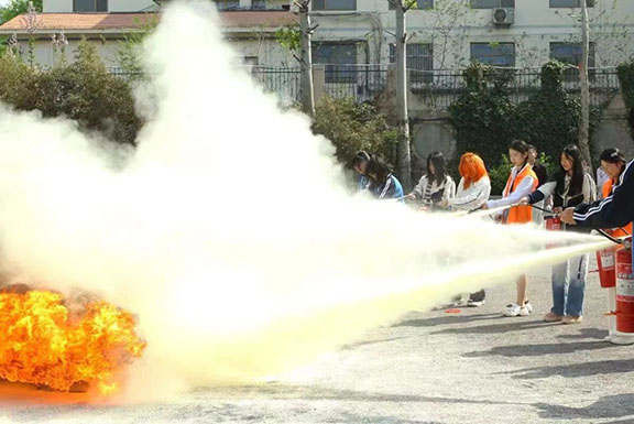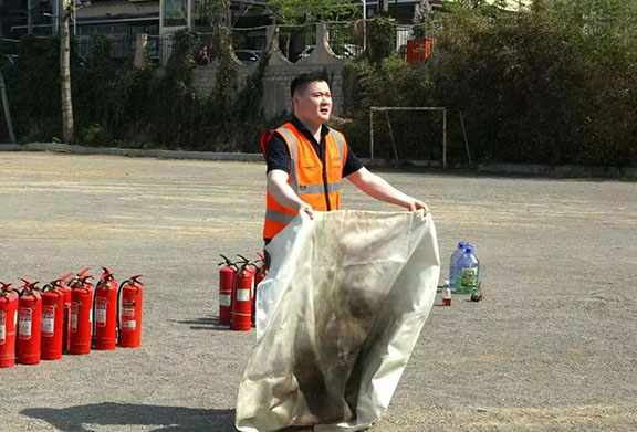 现场李老师指导志愿者示范了灭火毯、灭火器的使用方法,大家依次进行实际操作,初步掌握了灭火设备的使用方法。