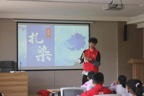 为弘扬中华优秀传统文化,提高青少年对传统非物质文化遗产的认知,使非遗文化在他们心中生根发芽。4月13日,结合园博园社区“青少年周末公益课堂”活动,服装学院团总支组织2021级表演班团支部开展了非遗扎染教学与体验活动,助力少年儿童文化素养的陶冶。