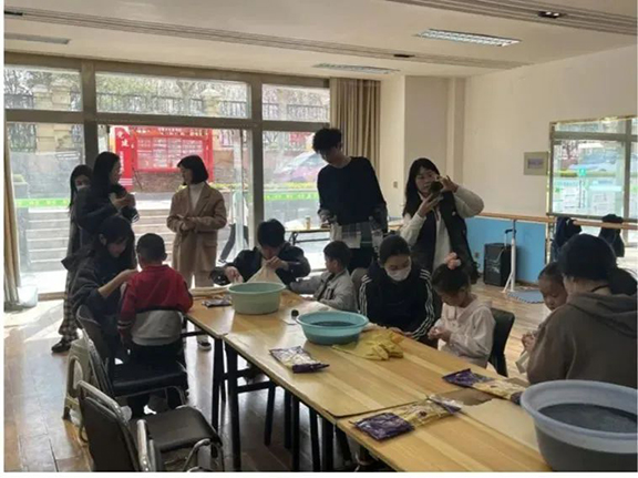 为进一步推动在校大学生全面发展,鼓励学生在服务人民、奉献社会的实践中创造有意义的人生,3月30日,服装学院团总支组织2022级服装与服饰设计团支部、服装设计与工程团支部前往常春藤南区社区开展扎染志愿服务活动。