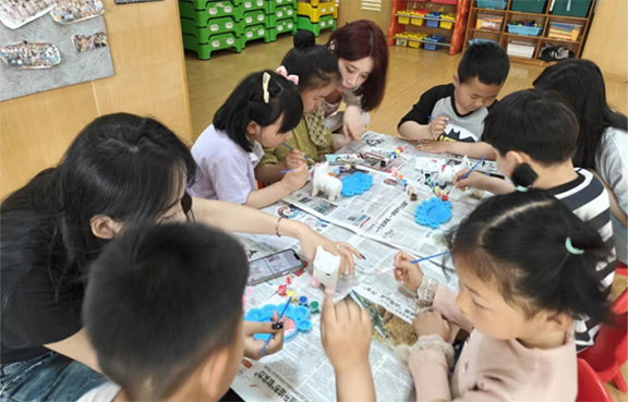 在泥叫虎绘色教学过程中,大学生志愿者们对非遗泥叫虎的起源、特点、绘色以及传承与保护四大方面进行充分的讲解和绘色示范,让孩子们充分了解和学习泥叫虎,志愿者们还精心准备了泥叫虎白胚和各种绘画工具,让孩子们通过志愿者们的示范和自己的想象力对泥叫虎进行绘色,激发孩子们的想象力和创造力,让孩子们用画笔描绘出自己心中的色彩。