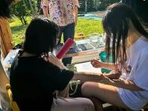 人体涂鸦环节让孩子们在身体上尽情涂鸦,释放自我,感受艺术的魅力;扎染和植物拓染活动让孩子们了解到传统工艺的魅力,同时也培养了他们的动手能力和创造力;石膏娃娃制作让孩子们亲手制作属于自己的小玩偶,体验了创作的乐趣;长卷画、帐篷涂鸦和透明伞涂鸦等环节则让孩子们在更大的画布上挥洒自己的想象,创作出了一幅幅充满童真和创意的作品;海洋沙滩和创意美术迎春花两个板块中,志愿者们引导孩子们观察自然,发现生活中的美。