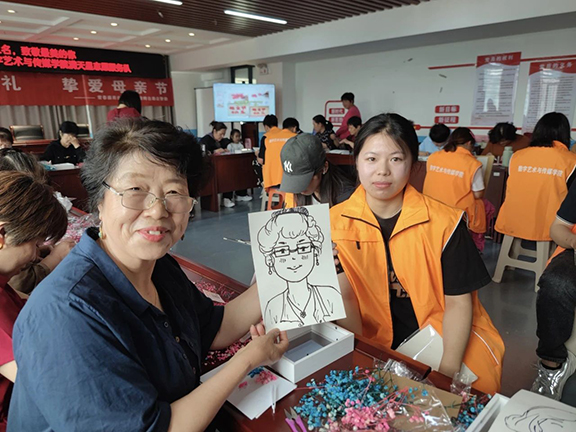 志愿者们充分利用他们的美术特长,以细腻的笔触捕捉每一位母亲温暖的笑容。这些画作不仅是对母爱的赞美,更是他们献给母亲们的一份独特而有意义的礼物。母亲们欣赏着画作,脸上洋溢着幸福的笑容。活动间隙,志愿者们陪伴母亲们聊天说笑,整个现场充满了欢乐和温馨的气氛。
