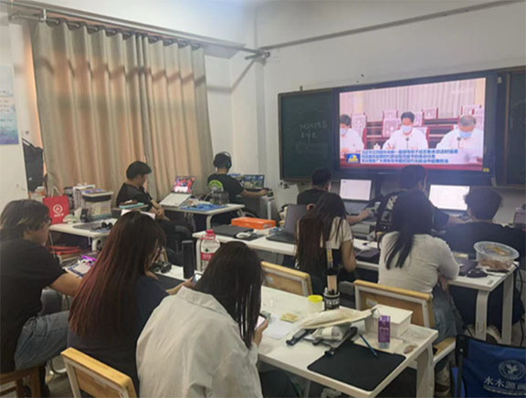 随后,各班团支书带领青年团员回顾学习了习近平总书记纪念五四运动100周年大会上的重要讲话,同时运用新时代青年榜样的实例,向同学们阐述了新时代青年所肩负的重大使命与期望,激励广大青年团员勇担重任,砥砺前行。