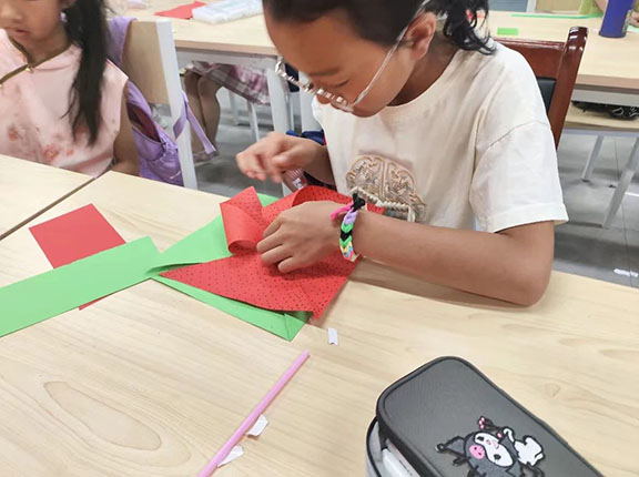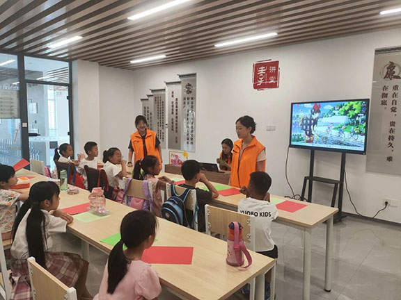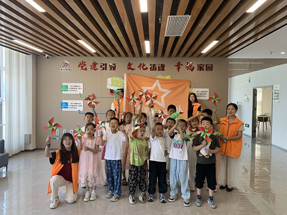 活动主要包括手工和游戏两个环节。活动当天,志愿者们与小朋友们一起动手制作西瓜风车手工,色彩鲜艳的材料在大家手中变成了一个个可爱的小风车,充满了创意与童趣。之后,大家一起玩起了“123木头人”“姥姥姥姥几点了”等经典游戏,现场气氛热烈,笑声不断。小朋友们在游戏中尽情释放着活力,欢声笑语回荡在整个街道,与志愿者们建立了深厚的友谊。大家手拉手、心连心,呈现一幅暖心画面。