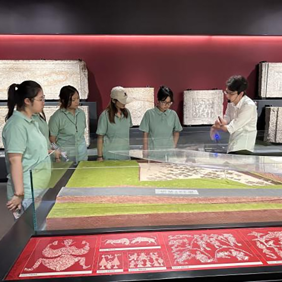 团队一行第一站来到滕州市汉画像石馆,在工作人员的生动解说下,详细了解了每块汉画像石的历史背景、文化故事和艺术底蕴,近距离地感受了中华传统艺术瑰宝汉画像石所散发出的独特魅力。