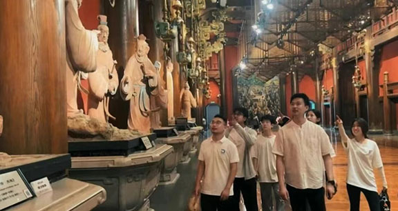 随后,调研团先后走访孔子博物馆和孔子研究院,深入了解孔子思想和儒家文化的深邃内涵。孔子博物馆和孔子研究院是为传承弘扬以儒家思想为代表的中华优秀传统文化,开展学术研究与交流而建立,与“三孔”世界文化遗产遥相呼应。一一走过“孔子的时代”、“孔子的一生”、“孔子的智慧”等展厅,成员们与青铜器、陶器、竹简进行“时空对话”中,感受到五千年时代变迁,见证着中华文明的源远流长。“夫子答问”互动聊天、“孔子密码——沉浸式文物数字艺术展”、“《孔子圣迹图》数字化长卷”、孔子IP文创……“AI+文物”,无不体现出数字技术赋能文化“两创”的时代魅力,为新时代儒家文化的赓续繁荣注入了新的科技引擎。