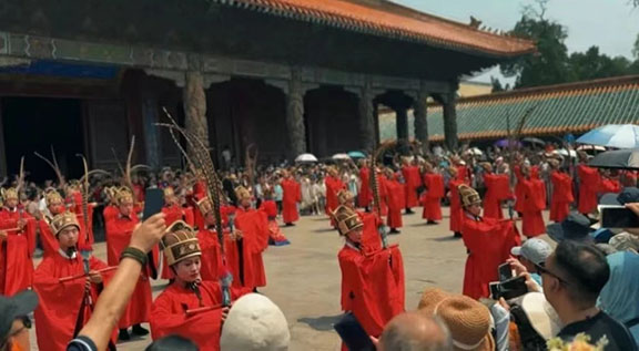 14日上午,调研团来到“三孔”景区,参观儒家世界文化遗产和祭孔仪式。怀揣着寻根探源的信念,在讲解员的带领下,成员们漫步古建筑之间,聆听孔子智慧与精神的历史传承,深切感悟中华优秀传统文化的独特魅力,从文化遗产中汲取修身立德和治国理政的智慧。在观看祭孔仪式后,团队队长刘洋表示:“仪式的最后,当发出面向孔子集体致敬的号召时,现场几千余人共同鞠躬,仿佛穿越千年的时光在我身边流淌,我真的成为了孔夫子的弟子,在致敬中坚定了文化传承的责任与担当。”通过对“老三孔”的调研与采访,团队成员切实理解了“中华民族独特文化基因”的历史渊源,并对深入弘扬中华优秀传统文化,坚定文化自信产生了高度的认同感和使命感。