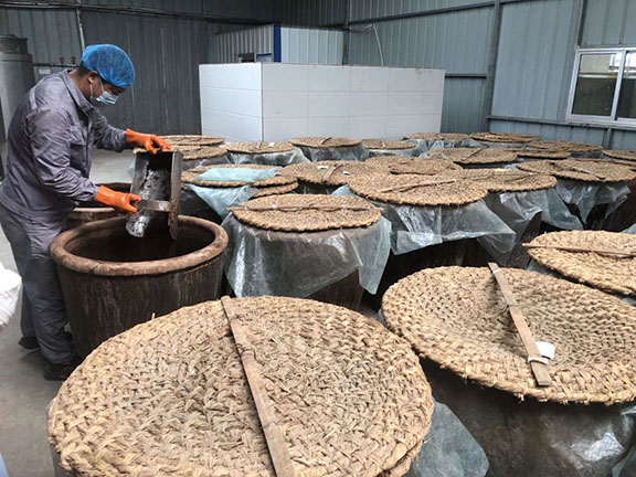 随后,团队一行来到了利津曲氏酱油醋的发源地——利津县南岭村。团队成员了解到曲氏酱油的酿造工艺需经过选料、蒸煮、制曲、发酵、淋油等十六道工序。在原料上,严格选择绿色、天然和无公害的小麦。传承人表示:在制作过程中,制曲和发酵是关键环节,前后需365天左右,期间还要进行晾晒、通风、搅拌和翻缸等复杂工作。每滴酱油都凝聚了匠人的精心照料,这份耐心和细致,令每一瓶酿出的酱油都充满了故事和灵魂。