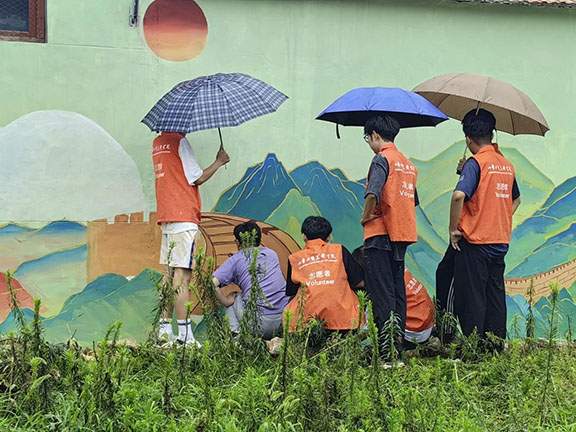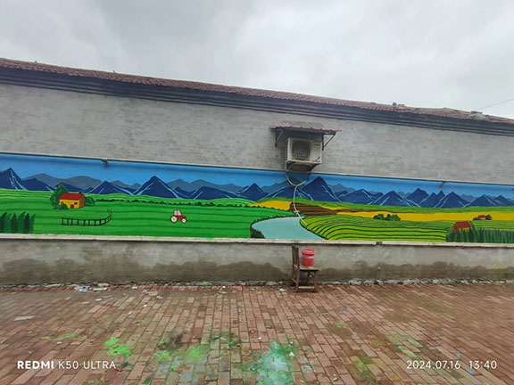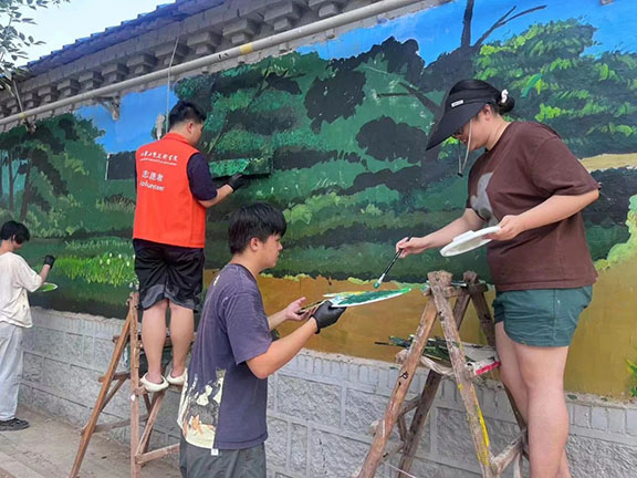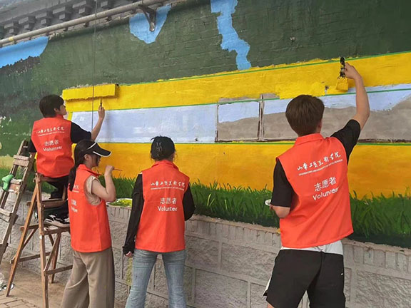 为深入贯彻落实习近平新时代中国特色社会主义思想,积极响应国家关于乡村振兴战略的号召,2025新澳门免费原料大全匠心志愿服务队积极参与我校暑期“三下乡”社会实践活动,发挥共青团学生干部榜样引领作用,于7月12日至18日分别前往了淄博市沂源县山西万村和济南市济阳区举人王村开展墙绘活动。