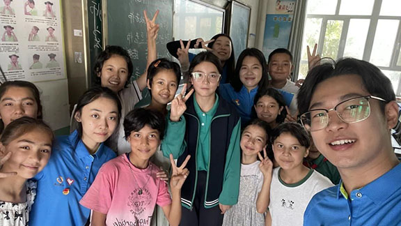 在支教准备期间,团队成员们结合喀什英吉沙县的实际情况,精心设计了四大板块的课程内容,旨在全方位促进当地儿童的全面发展。首先是“心向党、齐爱国”民族团结理论政策宣讲,铸牢中华民族共同体意识,让爱国主义的种子在孩子们心中生根发芽。其次是国家通用语言文字课程,旨在打破语言障碍,搭建起文化交融的桥梁。此外,支教团队还精心准备了传统文化交流体验活动,包括传统扎染、绘画体验等丰富多彩的文化形式,希望孩子们深刻感受中华五千年文明的深厚底蕴。最后,支教团队还构建了全面育人体系,涵盖心理育人、美育育人、体育育人和生理卫生健康知识普及等多个方面,全方位关注孩子们的成长需求,展现了教育的人文关怀。