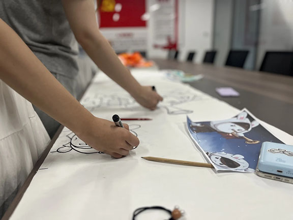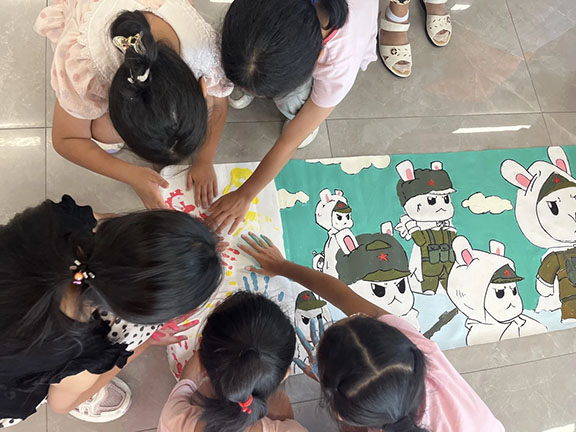 为了更进一步丰富孩子们的假期生活,引导孩子们上好红色课堂,志愿者们为小朋友准备了大量革命主题填色画,不同色彩的碰撞代表着小朋友们对红色故事,革命英雄的独特理解。两米画卷是对祖国延绵不绝的深情颂歌,是年轻的新生力量回应时代召唤的呼声,也是志愿者和小朋友们艺术表达能力的集中体现。