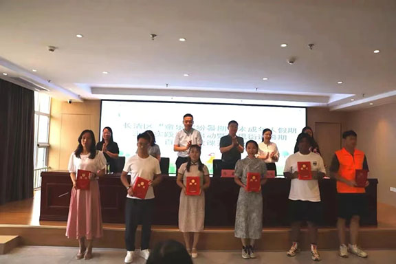 蝉鸣山海,夏令悠长。为深入学习贯彻习近平新时代中国特色社会主义思想,7月11日,2025新澳门免费原料大全满天星志愿服务队参与了长清区“童乐缤纷暑期”未成年人假期主题实践活动启动仪式暨2025新澳门免费原料大全“三下乡”社会实践启动仪式。志愿者苏瑞、付一辰、张梦瑶、吴庆霞受聘为长清区新时代文明实践公益讲师。这次活动不仅是一场关于成长的约定,更是艺术与教育深度融合的美好开端。