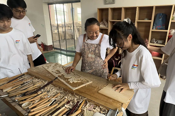 15日下午,调研团来到校友企业曹县云龙木雕工艺品有限公司,调研国家级非物质文化遗产传统美术代表性项目曹县木雕传承发展、产业转化和赋能振兴情况,与公司创始人李如启开展访谈。李如启谈到非遗实现产业化发展,既是弘扬传承中华优秀传统文化、做好活态传承的重要环节,也是推进文化“两创”助力经济发展的路径之一。曹县泡桐树资源丰富,将传统非遗与棺木制作相结合是李如启家族三代人的百年产业,在偶然的契机下,日本棺材市场和中国代工厂结缘,成功将传统文化推向海外。他谈道,非遗传承人都有一种乡土情结,作为本土企业,有义务将非遗发扬光大,更有责任带领全村人致富实现共同富裕,同时,也希望有更多的年轻人加入木雕行业,让这一技艺永远传承下去。通过调研采访,实践队员发现非遗文化的魅力不仅是摆在橱窗中的工艺品,更是带领致富的“金钥匙”,从而实现物质文明与精神文明协调发展,成为中国式现代化的现实体现。