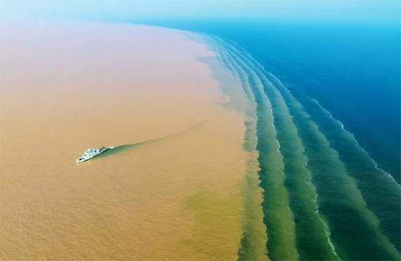 “三万里河东入海,五千仞岳上摩天”课本中的文字再次具象化,站在黄河入海口处感受着人类的渺小与黄河的波澜壮阔,我不由得感叹着自然的伟力。黄蓝交汇是大自然这位杰出的艺术家的得意之作,我们有幸成为展馆的游客。这个被大众戏称为“鸳鸯锅”的入海口,其壮阔是无法用只言片语去形容的,在黄河水与海水交汇的壮丽景象中,我们寻找灵感,思考如何将黄河故事融入文创设计,落实黄河文化建设高质量发展的需求。
