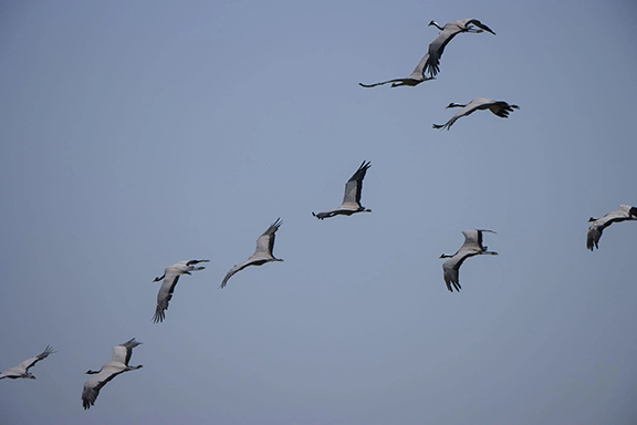 一进入园区,我们就被各种珍稀鸟类的美丽身姿所吸引。白鹭、蓑羽鹤、丹顶鹤等鸟类在园中自由飞翔、觅食、栖息,它们或优雅地漫步于水边,或振翅高飞于蓝天之上,展现出了一幅幅生动的自然画卷。