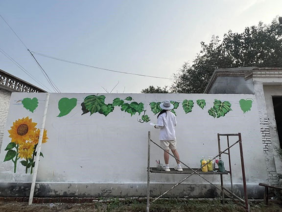为引导和帮助青年学生在社会课堂中受教育、长才干、作贡献,争做有理想、敢担当、能吃苦、肯奋斗的新时代好青年,7月13日,受德州市派禹城市房寺镇三合庄村第一书记陈鹏邀请,数字艺术与传媒学院满天星志愿服务队——德州墙绘实践团10余名师生来到了禹城市房寺镇桥头孙村开展了为期5天的暑期“三下乡”社会实践活动,活动以“文化铸魂,绘梦青春”为主题,同学们结合村庄实际情况,发挥专业特长绘制乡村文化墙,改善村容村貌,传播中华文化。