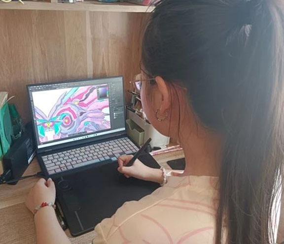 在线上团队成员和指导老师积极互动,热烈探讨。队员们将设计出的稿子以及设计想法发送至线上交流群中,既可以让指导老师了解队员们的设计进度,有针对性的进行讲解和引导帮助队员们发散思维。又可以让团队成员相互学习、借鉴和交流增强团队协作意识。同时在线上指导老师会指出好的设计方案,提供给队员们做参考,让队员们可以有更多的设计灵感。