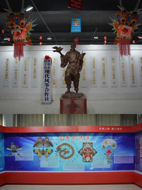 实践前期视觉传达设计学院的指导老师带队前往山东省潍坊市潍坊现代风筝合作社进行潍坊风筝的相关调研。坊子区现代风筝合作社是全市首家以风筝生产、销售为主导产业的合作社。被誉为“中国风筝产业第一村”。以此为基础,为接下来项目的开展增添了更多的启发。