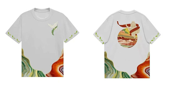 本实践团队通过与青岛优恺隆包装制品有限公司深入交流具体需求,精心设计了符合企业形象的服装和企业食品包装袋。其中,和平鸽象征和平与和谐、长城代表坚韧与传承、绿色茶叶元素彰显了自然与健康,这些元素不仅提升了衣物与食品包装的美学价值,更展现了乡村文化的深厚底蕴与独特魅力。