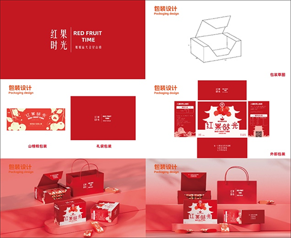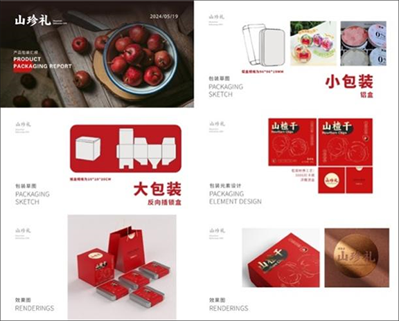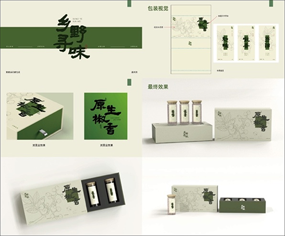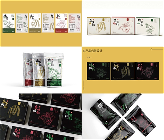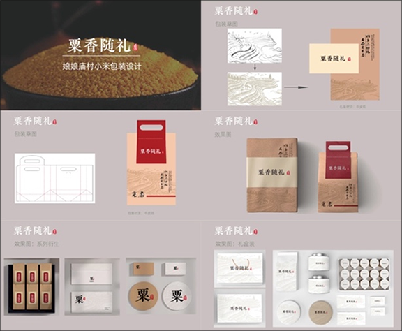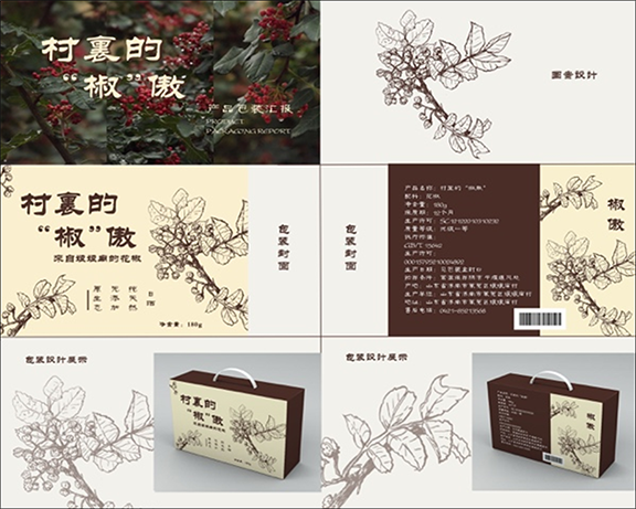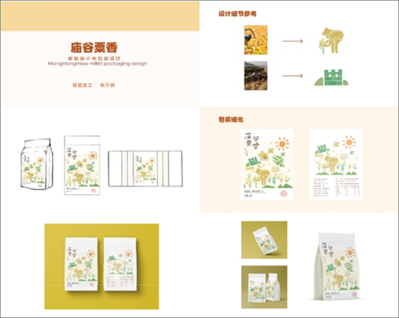 时隔一个月,暑假三下乡“农品创艺服务先锋队”再一次来到娘娘庙村,就农产品包装设计进行汇报。此次设计方案由师生历经五周时间精心打磨,学生们利用网络调查和线下调研等方式寻找相应元素,收集了大量资料,包括市面包装的尺寸、常用形式、外观设计等,根据当地领导的要求和市场需要,对关键素材进行提取和整理。在姜老师的指导下,经过反复推敲,厘清设计思路,提炼设计要素,最终产出了多套不同风格的设计方案。在作品成果汇报会上,学生们从不同角度汇报了设计方案。以设计方案“乡野寻味”为例,该方案以娘娘庙村的特产花椒进行设计包装,这款设计中,整体色调采用天然绿色为主,提取了“原生态”“乡野”“品质”“天然”等具有代表性的元素,作品构思新颖,整体呈现效果也十分完整。另一款设计则以小米健康补气的功效和原生态的种植环境为落脚点,引用了“嘉育”元素,设计围绕娘娘庙村当地特产小米展开,整体风格简约质朴、清新自然,将多个元素相结合,体现了绿色原生态和零添加的特点。其中参考小米形象的的外包装,则寓意着拓宽致富路、收获累累粟果。除此之外,学生们还结合了娘娘庙村的自然元素,以特产农作物花椒和山楂的包装为主题进行设计和完善,班级里热心同学也积极参与了农产品的开发设计。村支两委对各同学的汇报方案进行了点评。他们充分肯定了学生们大胆的创意思维和精美的设计蓝图,并从乡土元素的应用,设计风格的统一,规划指标的要求等方面提出了意见建议。他表示,将同学们精心构思的设计思路,运用到实际的乡村农产品改造中,定能使这座千年历史古村落充满青春活力,焕发新的生机。