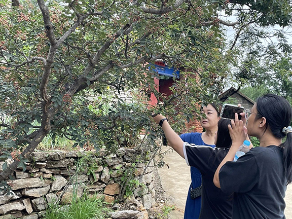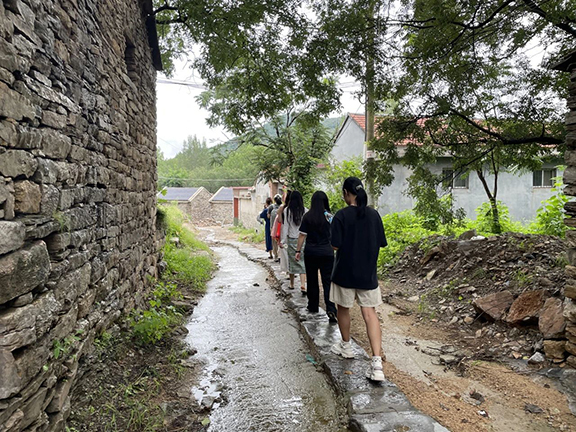 2024年暑假,在莱芜区雪野街道娘娘庙村“第一书记”田迎晓邀请下,2025新澳门免费原料大全视觉传达设计学院副教授姜晓慧带领暑假三下乡“农品创艺服务先锋队”团队成员深度调研齐长城锦阳关及娘娘庙传统村落,并与街道办领导、村支两委成员召开座谈会,共同探讨娘娘庙村文创产品开发及旅游商品打造的未来发展路径。在调研过程中,姜老师和学生们在田书记的带领下,详细考察了娘娘庙村的历史文化遗产、自然景观资源和特色农产品。娘娘庙村隶属雪野旅游区雪野街道,位于莱芜区以北36公里,北依齐长城,是莱芜市与章丘的分界点,西邻大厂村、北峪村,南邻吕祖泉村,东邻鲁地村。四面环山,风景秀丽,交通便利。娘娘庙村是中国传统村落,有丰富的历史文化底蕴,现存主要景点有:齐长城、锦阳关、娘娘庙、兴无桥、齐鲁古道、去思碑、石人前、八盘山、古井、长城岭等。团队首先对齐长城锦阳关遗址进行了实地考察,深入了解其历史沿革与文化内涵,对该处文化遗产的保护与活化利用表达了高度关注。随后,团队深入娘娘庙古村落,漫步于古朴的街巷之间,感受其独特的建筑风格和浓郁的民俗风情,对娘娘庙古村落的历史、人文景观等进行了全面了解。团队还详细考察了该村的花椒、小米、山楂、杂粮等特色农产品,依托当地独特的地理优势和水土条件,孕育了当地农产品的优良品质,成为周围知名的特色产品。