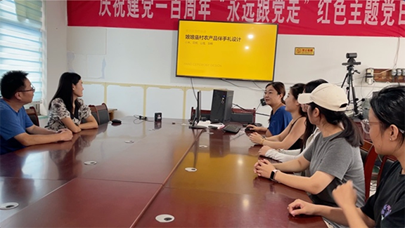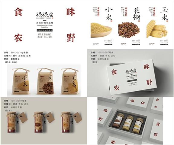 在与街道办领导、村支两委的座谈会中,姜老师和学生们与当地领导就娘娘庙村的农产品定位、开发和包装设计进行了深入交流,共同探讨如何借助专业力量,将丰富的历史文化资源转化为具有市场竞争力的农产品与旅游商品。姜晓慧副教授表示,娘娘庙村拥有得天独厚的文化资源和自然风光,通过深入挖掘和整合这些资源,依托即将建成的齐长城博物馆,可以开发出具有地方特色的旅游商品,提升村庄的文化内涵和旅游吸引力,为农民增收提供智力支持。在设计呈现方面,姜老师详细阐述了如何通过创新设计、精细制作,将当地的特色农产品转化为富有吸引力的旅游伴手礼,提升游客的消费体验,进一步推动乡村旅游经济的发展。同时,姜老师还给出了一系列具体的建议,提出以齐长城锦阳关及娘娘庙古村落为灵感源泉,设计开发兼具地域特色与艺术价值的文创产品的构想。团队帮助娘娘庙村开展农产品包装设计,深挖特色产品发展痛点,紧抓当地农民宣传、包装设计等方面难点,以花椒、小米、山楂等特色农产品为重点,制定包装设计方案。在设计过程中,要深入挖掘娘娘庙的历史文化和民俗传统,结合娘娘庙村人文景观的来源故事,提炼出具有代表性的元素,采用富有地域特色的色彩和图案,融入了娘娘庙古村落的民俗文化。在图形设计方面采用富有表现力的视觉元素和诸如手绘插图等方式展现娘娘庙古村落的自然风光和农田景象。通过文化提取与图形设计的有机结合,将有效促进娘娘庙村农产品的推广,助力乡村振兴和文化传承。