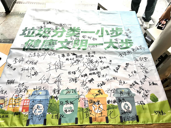 活动现场,学院还组织了垃圾分类倡议活动,通过现场发放宣传资料,开展垃圾分类挑战赛、现场签名等方式,宣传垃圾分类的知识和理念,激发同学们的参与热情。