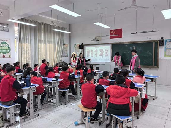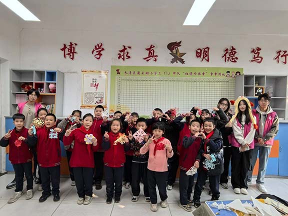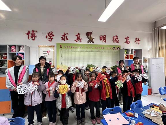 2024年11月20日 ,一场别开生面的美育剪纸趣味课堂在济南市长清区崮云湖小学火热开展,视觉传达设计学院2023级、2024级青年团员组成志愿服务队前往该校开展美育活动,带领孩子们通过剪纸技艺领略中华民族优秀传统文化之美,营造传承、弘扬传统文化的良好氛围。