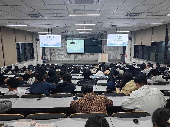 11月22日晚,建筑与景观设计学院团总支在三合堂开展以“社会实践”为主题的团课培训。本次团课由两支校级暑期“三下乡”社会实践团队成员担任主讲,2024级全体新生参加。