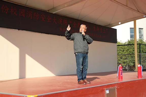集合完毕后,小学安全处主任宋金碧强调消防安全演练的重要性。他提到消防逃生演练的目的为提高师生对火灾突发事件的应急反应能力,教育师生掌握基本的消防安全知识和逃生自救技能。