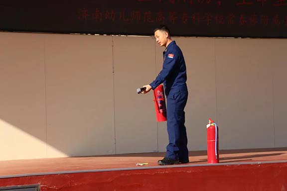 长清消防大队大学城消防救援站消防员代表张路上台讲解相关消防知识,并对灭火器的使用方法进行演示。张路警示大家,消防安全关乎每个人的生命财产安全,需要全社会共同努力,同时呼吁师生们从自身做起,从小事做起,学习消防知识,提高防火意识,共同营造一个安全、和谐的社会环境。
