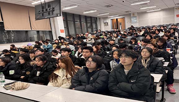 团课伊始,赵正阳向同学们讲述了各个学院的发展历程、专业简介和教学科研,在不断整合各项资源中各学院逐渐形成了自己的优势和特色。随后,赵正阳向同学们展示了各学院多彩多样的品牌活动,如纸板搭建大赛、美文诵比赛、辩论赛、五月的花海等,同时列举了近年造型艺术学院取得的优异成绩,鼓励同学们积极投身于校园活动中。