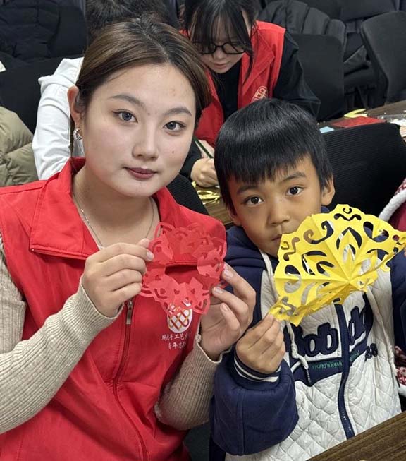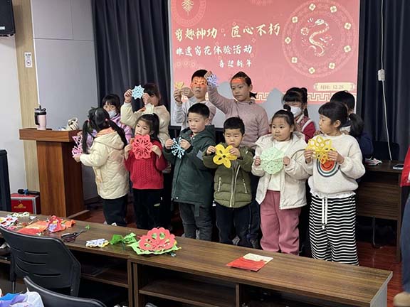 为弘扬中华优秀传统文化,喜迎元旦佳节的到来,2024年12月28日,现代手工艺术学院团总支组织“美美与共”志愿服务队赴文昌街道办事处开展“剪趣神功,匠心不朽”非遗窗花体验活动。
