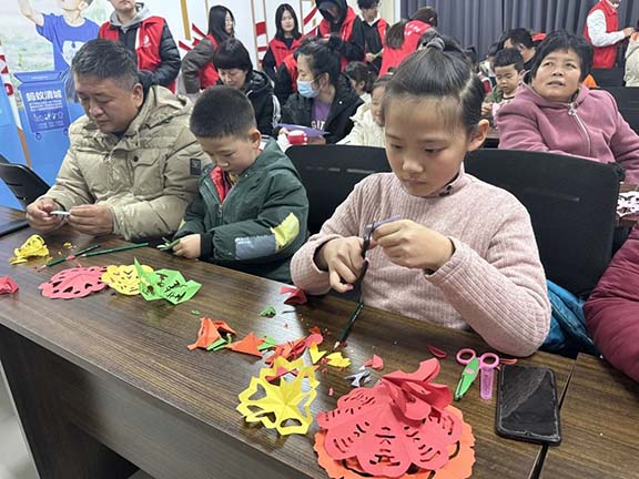 在志愿者的帮助下,居民们热情高涨,纷纷动手学习。大家在剪窗花的过程中,深切感受到了中国民间艺术的魅力,体会到了非遗创作的乐趣。