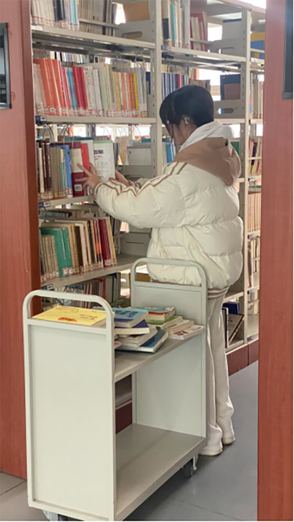 1.整理书架和书籍摆放、借还书籍归位;