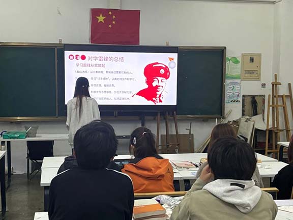 首先,各班团支书向青年学生详细介绍了雷锋的生平事迹。从雷锋艰苦的经历到他在工作岗位上的无私奉献,黑白影像中,雷锋那一张张憨厚朴实的笑脸、一个个助人为乐的场景,深深打动了在场每一位同学的心,同学们深刻体会到了雷锋对党和国家的热爱、对服务人民的热忱。