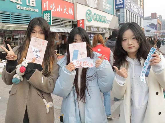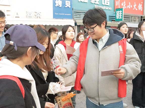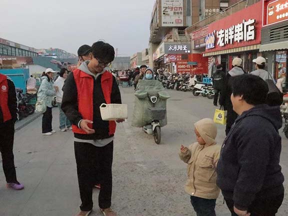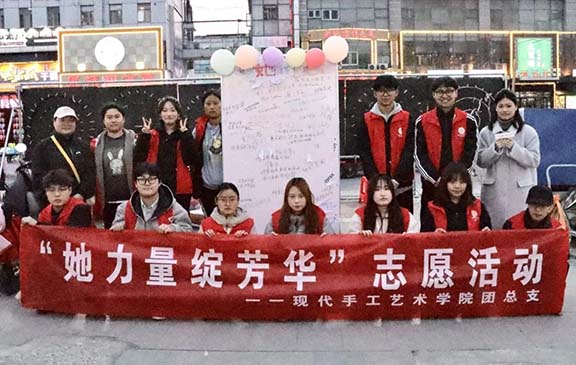 3月8日,现代手工艺术学院“美美与共”志愿服务队走进长清大学城商业街,开展“她力量,绽芳华”三八妇女节志愿活动。