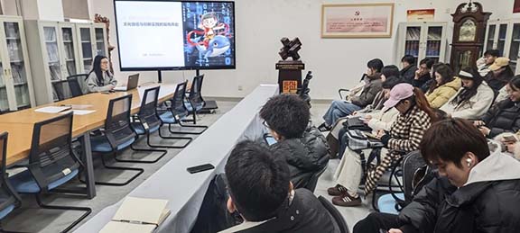 韩丽达做“文化自信与创新实践的双向奔赴”的主题讲座,从《哪吒之魔童闹海》、DeepSeek两个现象级案例为引,剖析其背后“历史传承的创造性转化、技术突破的文化底气、和合共生的生态构建”等一系列的文化密码,并从文化自信的三种维度探讨了新时代青年文化自信的现实意义和使命担当。接下来以具体的设计案例给同学们介绍了“从技术赋能到价值创造”的创新方法论。最后,结合本学院学生的专业特点,提出新学期展望:带着故宫修复师的执着,Deepseek工程师的锐气,哪吒的豪情,书写属于这个时代的设计史诗。