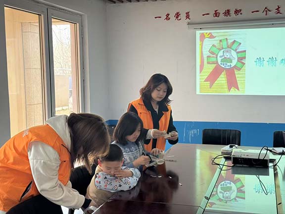 理论学习结束后,孩子们迎来动手实践环节——制作雷锋徽章。在志愿者的耐心指导下,孩子们认真剪裁,每一个步骤都一丝不苟。小小的徽章在孩子们手中逐渐成型,孩子们在收获满满成就感的同时,也锻炼了动手能力,学会合作互助。他们纷纷表示,要将徽章佩戴在胸前,时刻以雷锋精神激励自己。