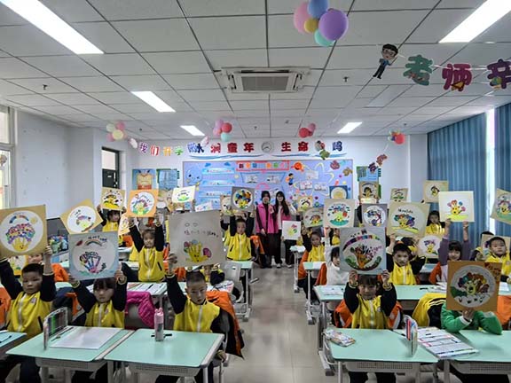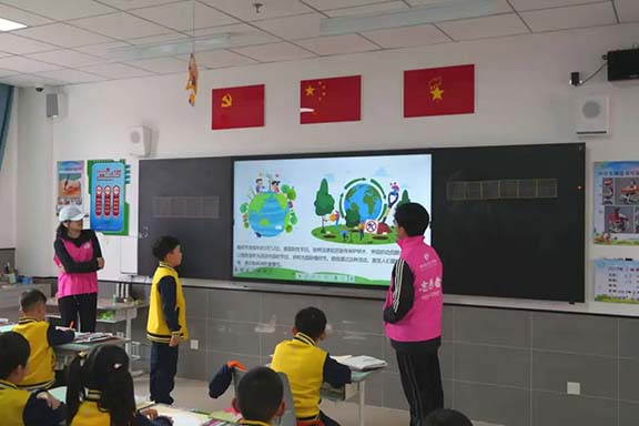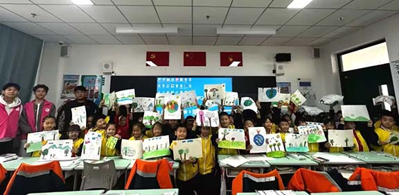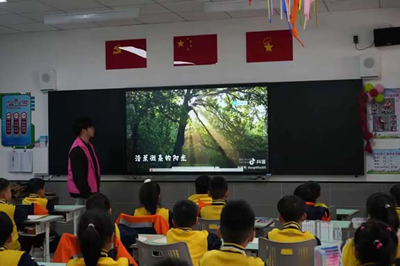 活动中,志愿者们和一年级的小朋友们一起学习了植树节的起源、发展历程以及背后蕴含的文化意义,通过生动的讲解和视频素材,让同学们认识到生态保护对人类生存、社会发展以及地球未来的深远意义。鼓励水鸣街小学的“小水滴们”用行动践行环保理念,为大地增添一抹生机勃勃的绿色风景。