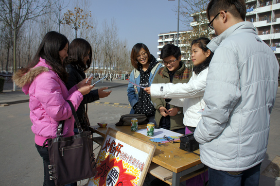 活动开展期间,来自各学院的同学们积极参与,在人人网上晒出许多关于“火焰杯”的故事和感受。有不少同学是参赛人员的铁杆粉丝,积极留言为选手们加油鼓劲。抢票活动刚开始便有上百名同学留言,10分钟内活动的入场券就被抢空。活动的工作人员更是认真负责的统计留言人数与获奖人员名单,及时公布的获奖结果。取票当天,抢票成功的同学积极有序的凭借本人证件到宿舍十字路口领取活动门票,每个人都对“火焰杯”校园十佳歌手大赛充满了期待。