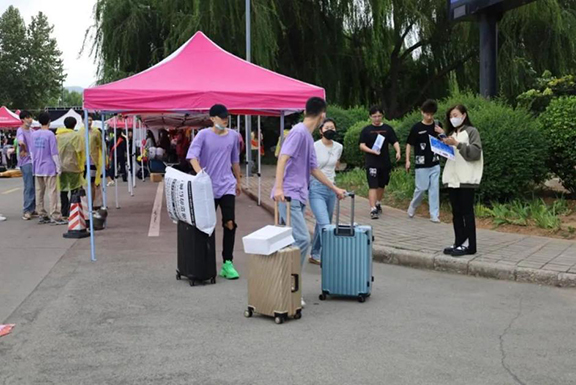 校学生会以及各学院学生会志愿者按照学校的统一安排,自早上7:00至晚5:00分班次、分时段、分区域在校内外开展志愿服务,各学院积极指引协调迎新车辆,为新生入学时提供暖心服务。校外志愿者同学在各个车站耐心等待,贴心服务,引领新生到专用大巴车,为来校的山工艺学子搭建了一条快捷通道。校内建立“学生会志愿服务站”,开设失物招领、行李暂存处服务专区。各学院也有专门的贴心服务长廊。迎新工作稳步、细致的全面推进,力争做到不落下一位同学,能更好的减轻新生的行囊负担,搭建好畅通无阻的行李传送带,保证效率的同时为每一位同学提供暖心服务。
