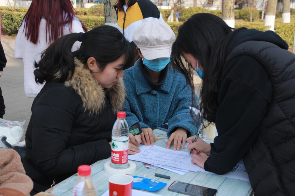 3月4日至5日在学校十字路口进行旧衣物旧书籍的捐献活动,学生会的工作人员积极维持现场秩序并且给捐献旧衣物旧书籍的学生讲解了活动内容及意义。
