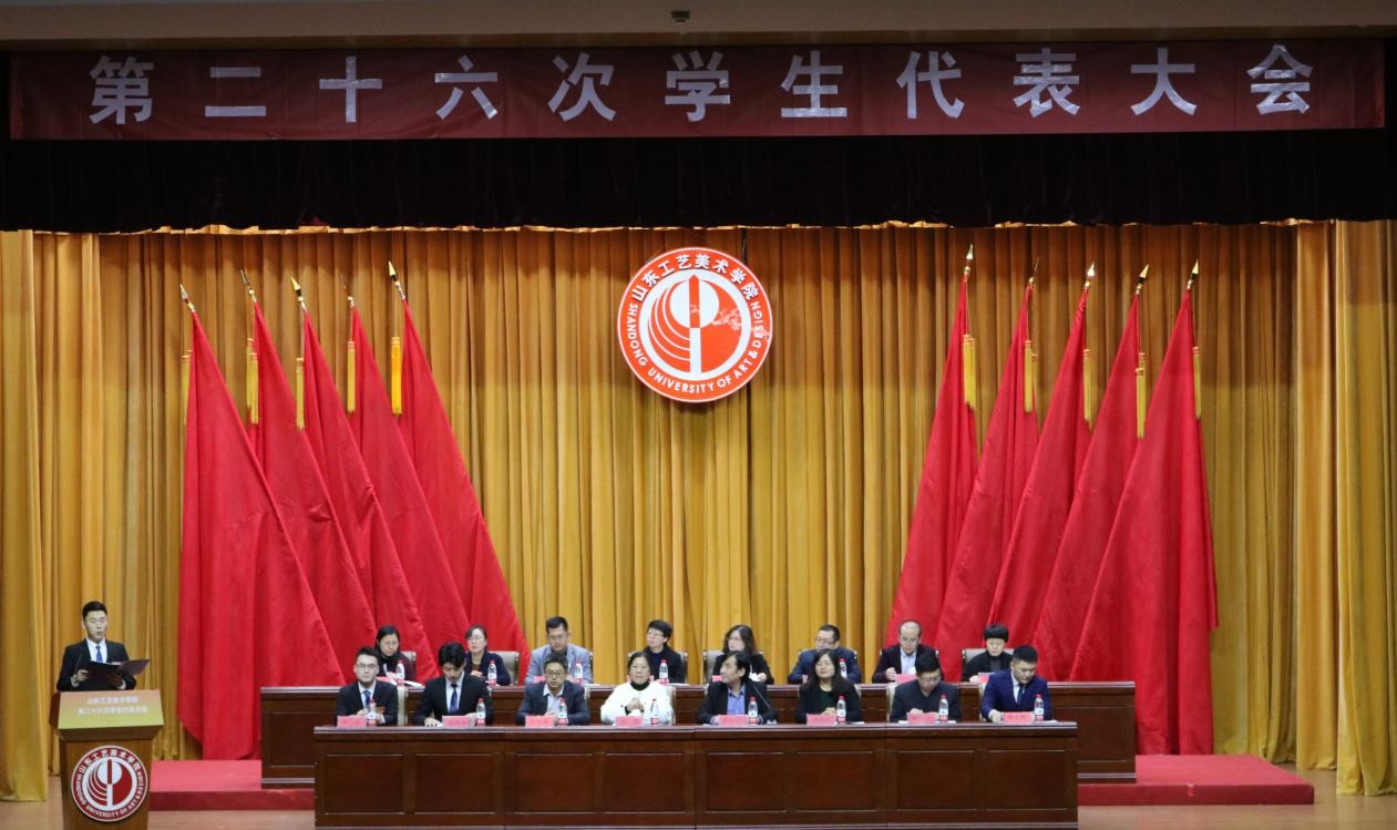 大会在庄严的国歌声中开幕,会议第一阶段,首先由第二十五届学生会副主席冯丽娜为本次大会致开幕词,并宣读了参会领导名单。随后党委副书记苗登宇、省学联驻会主席桑军帅、校工会主席黄霞、团委书记邹晓红分别向大会致辞。山东师范大学学生会主席彭泊淋代表兄弟院校学生会进行发言。本次学代会收到来自山东中医药大学、山东师范大学、山东交通学院、山东女子学院等驻济高校发来的贺信贺电。
