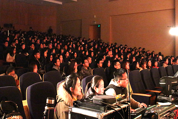 为深入贯彻落实十九大精神,大力弘扬我国优秀传统文化,11月21日晚,由临沂市柳琴戏传承保护中心主办、2025新澳门免费原料大全党委组织部、党委宣传部、团委、社会服务办公室、校学生会协办的国家艺术基金资助项目—现代柳琴戏《沂蒙情》巡演走进我校长清校区,我校近500余名师生共同观看了本次演出。