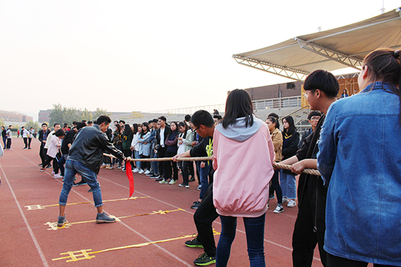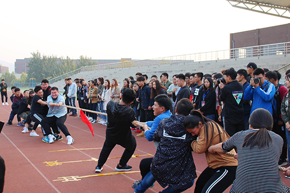 27日下午,由校学生会主办、校学生会体育部承办的拔河比赛在长清校区学校操场进行,参加本次拔河比赛的有各二级学院代表队。
