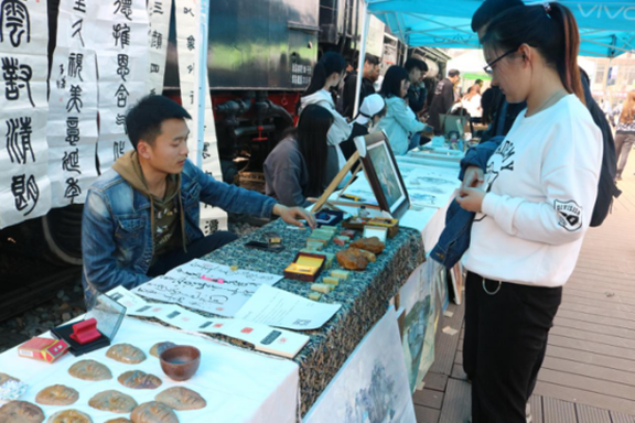 本次展卖为期两天,共分17个展区,89个主摊位,近800份作品展出,成交额3万余元。展售作品涵盖面广、构思新颖,共有来自百余名同学的绘画、漆艺、雕塑、扎染、花艺、皮具等作品进行了展售,同时邀请了其他高校同学共同参与展卖活动。活动过程中还穿插了作品展卖、收集特色印章、优秀摊位评选、线上分享盛况等多个趣味环节。